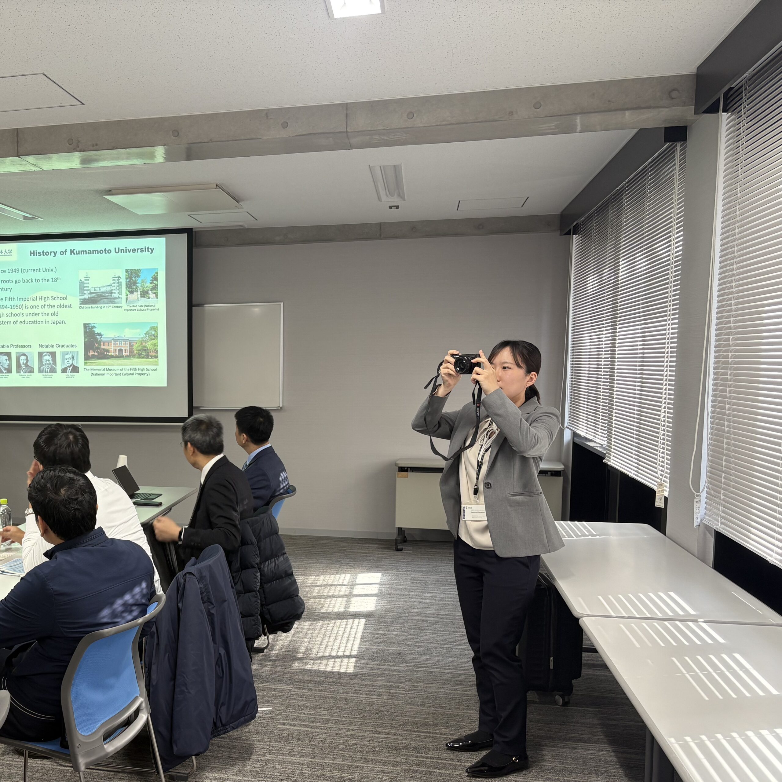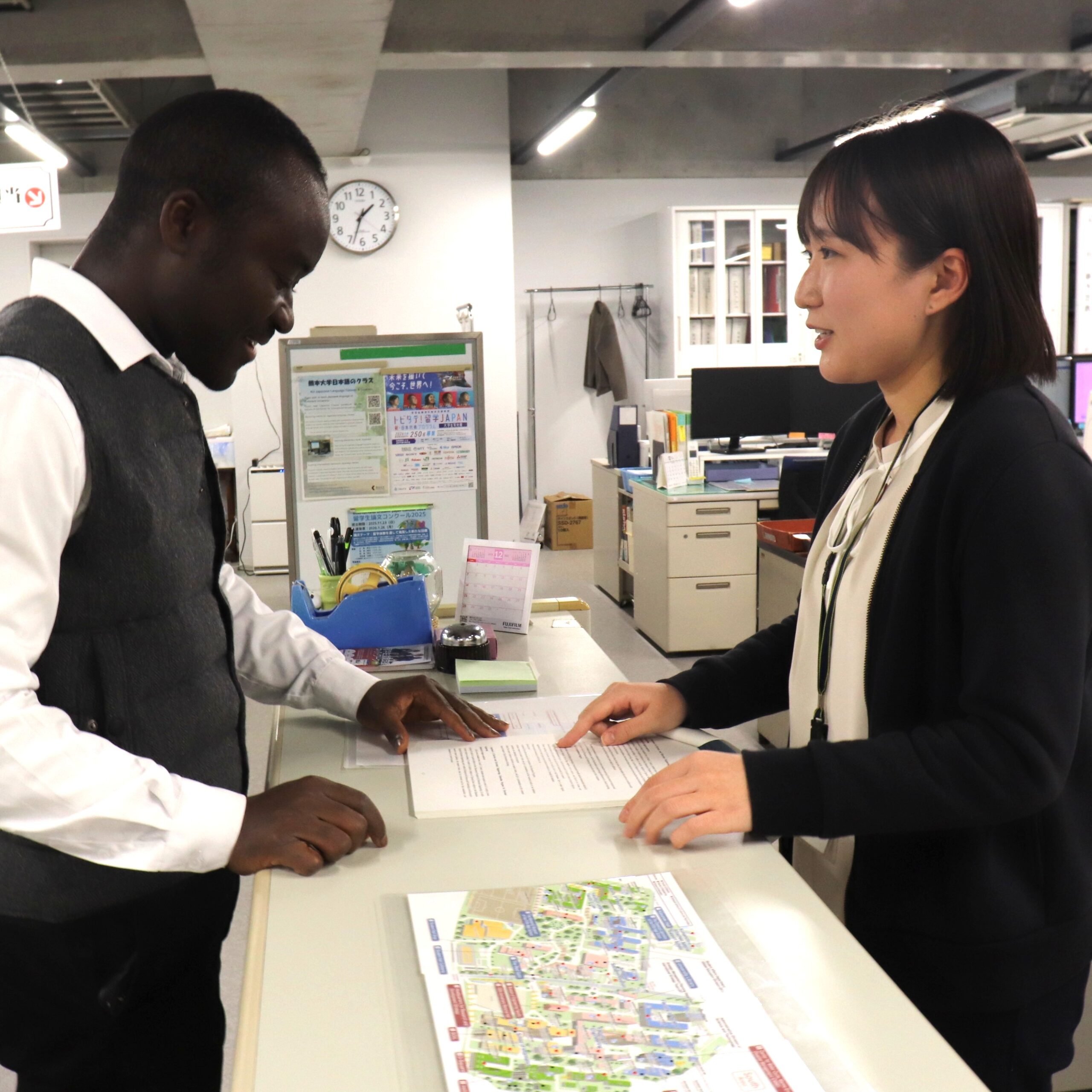 主に大学の国際交流に関わる業務を担当しています。具体的には、海外の大学・教育機関との交流協定の締結に向けた調整や学内会議の実施、協定校の役員・教員の来訪対応、大学主催の国際シンポジウム・セミナーの企画立案・実施、職員向けの英語研修の企画立案・実施、その他海外の大学・教育機関からの問い合わせ対応等を担当しています。