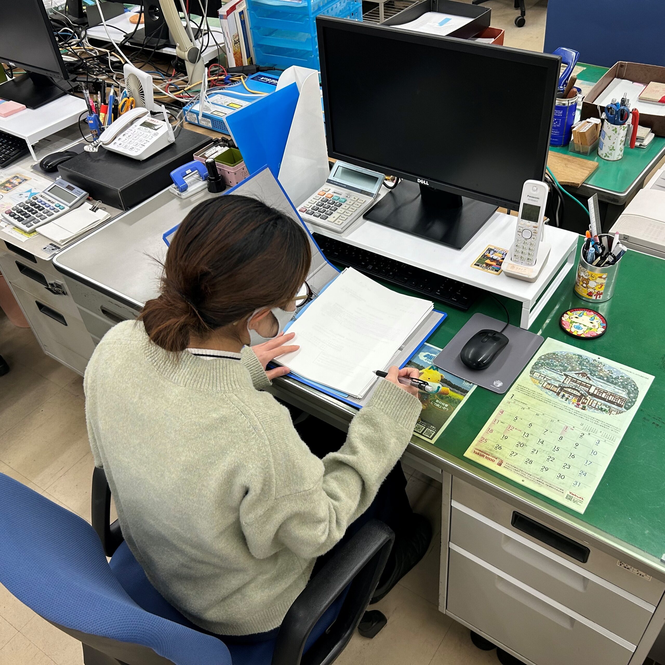 用度係は学校で使用する物品の調達(業者から見積取得、発注後の納品確認まで)が主な仕事です。業者の方と商品の納品確認や、作成する書類をまだ紙ベースで上司に回報しているため、対面での仕事が他の係に比べても多く、在宅勤務できるの?と言われたこともありますが、周りのたくさんの方のサポートがあるおかげで今の勤務形態を続けることができています。