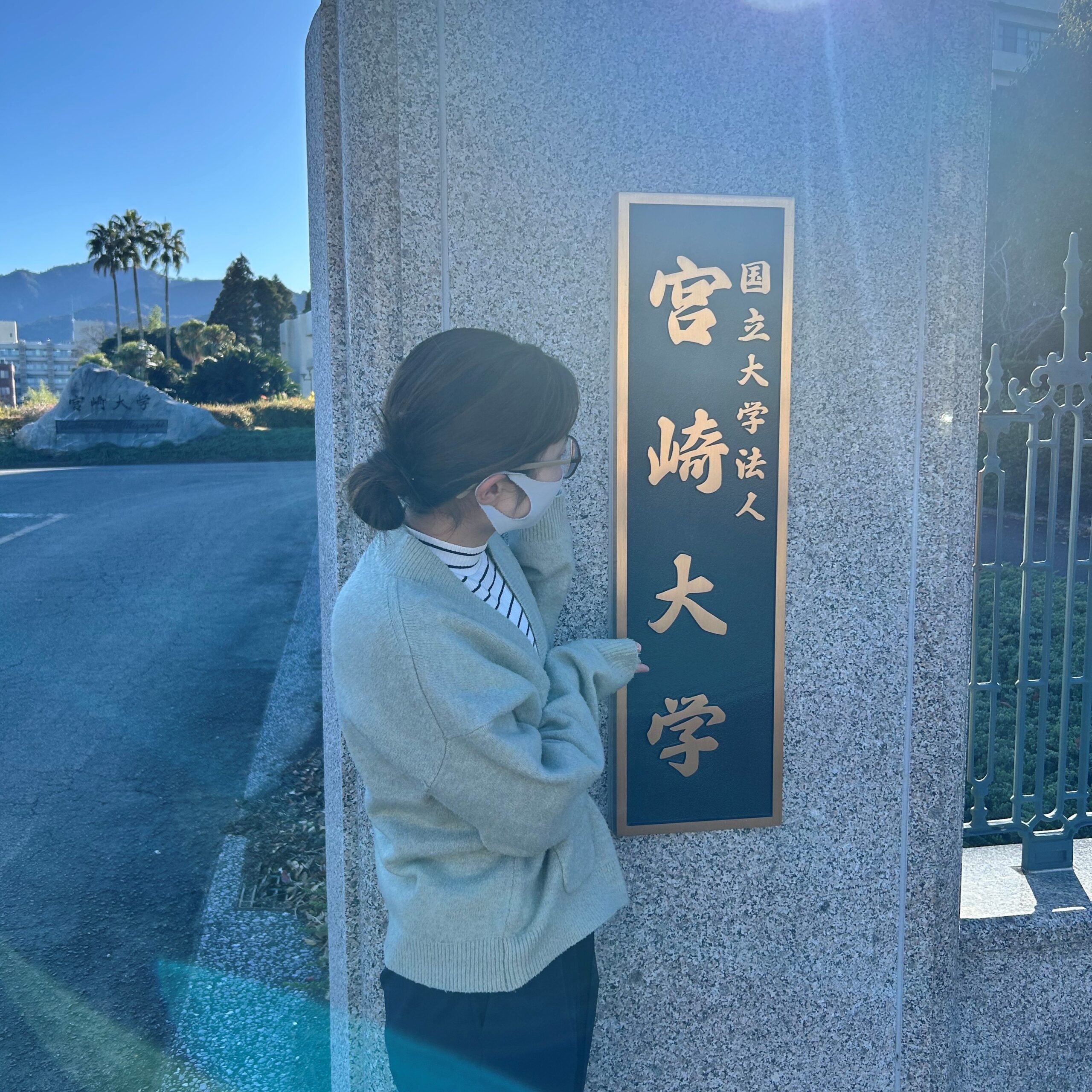 鹿児島大学は教育学部や医学部だけでなく、水産学、獣医学といった国立大学のなかでも多様な学部で卒業生を輩出しており、世界中に散らばった卒業生や先生方の活躍を目にするたび法人職員になって良かったと感じる毎日です。