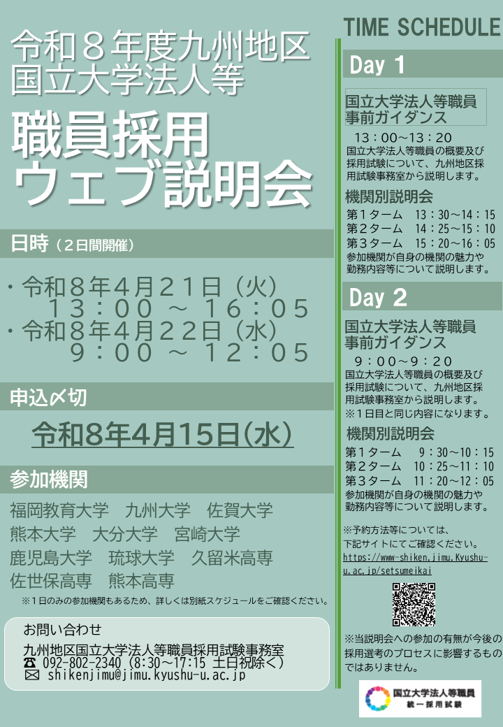 • 【令和8年度】九州地区国立大学法人等職員採用試験 ウェブ説明会